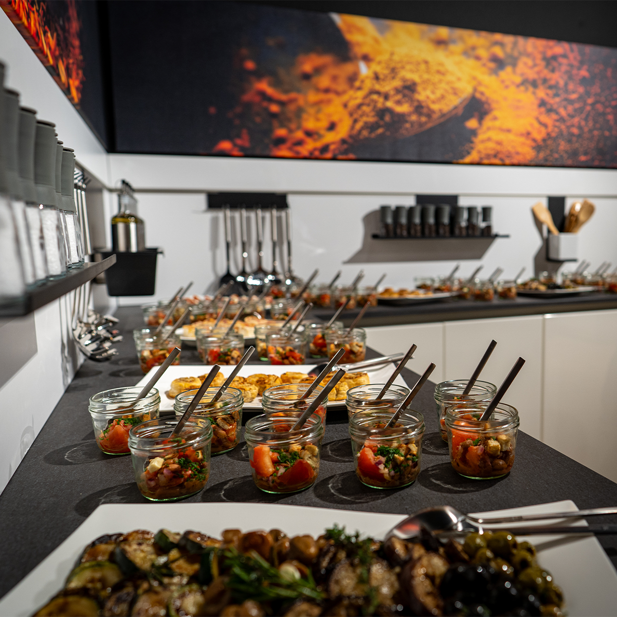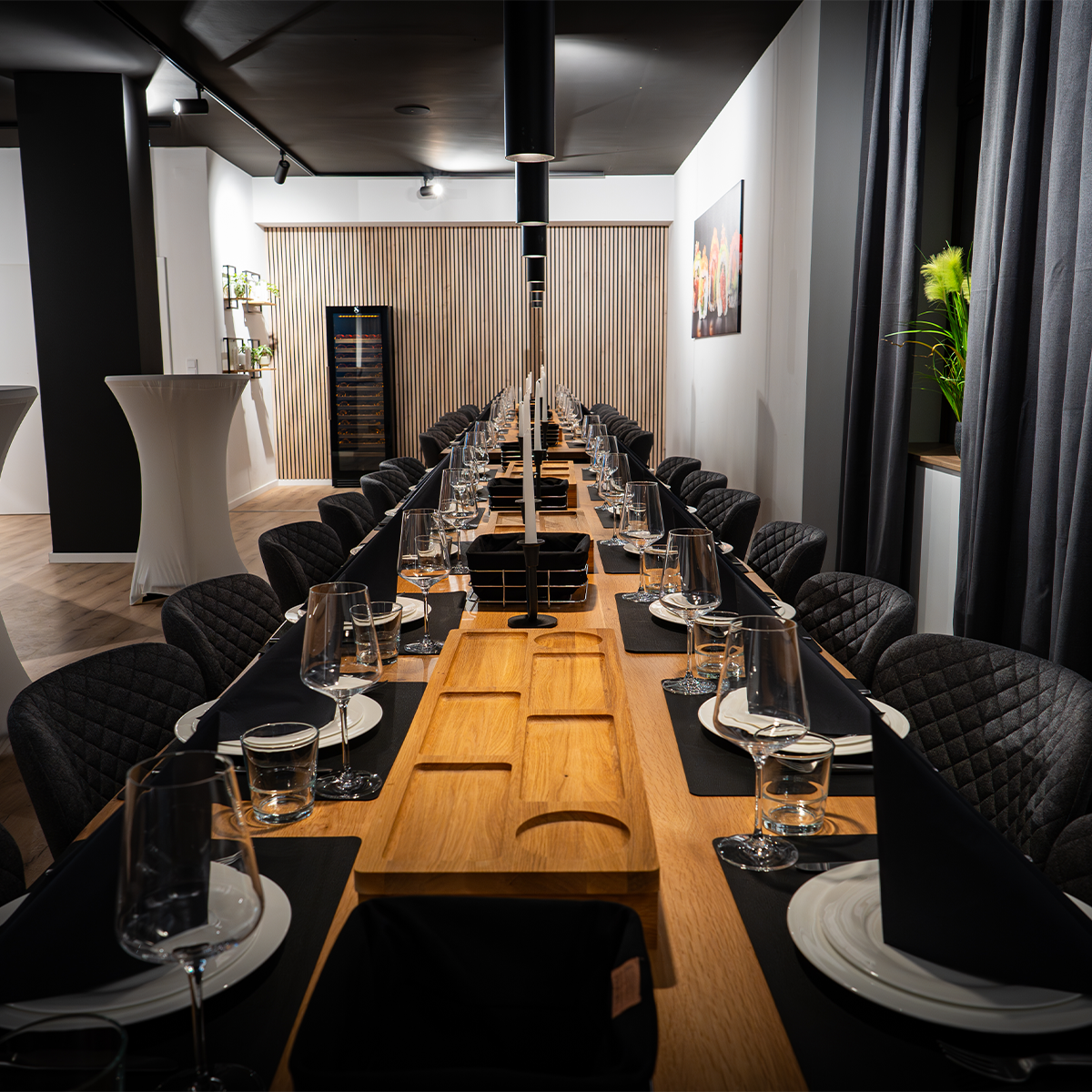 Unser Ziel ist es, Ihnen unvergessliche Momente in der Küche zu ermöglichen und Sie auf dem Weg zu einem echten Gourmet und Geschmacksexperten zu begleiten. Durch praxisnahes Lernen und inspirierende Kurse vermitteln wir Ihnen das Wissen und die Fertigkeiten, um Ihren kulinarischen Horizont zu erweitern. Ob Firmen, Teams, Vereine oder große Freundesgruppen – bei uns erleben Sie niveauvolle Atmosphäre und genussvolle Stunden in großer Runde. Das gemeinsame Kochen, Lachen und Genießen, begleitet von einem Glas Wein aus unseren Weinkühlschränken, macht jeden Besuch zu einem besonderen Erlebnis.