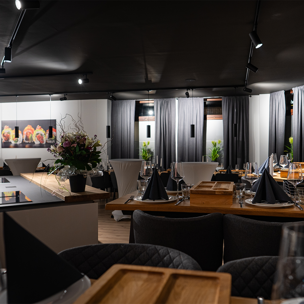 Unsere Kochschule bietet Platz für bis zu 48 Personen – perfekt für Teamevents und Firmenfeiern in stilvollem Ambiente.
