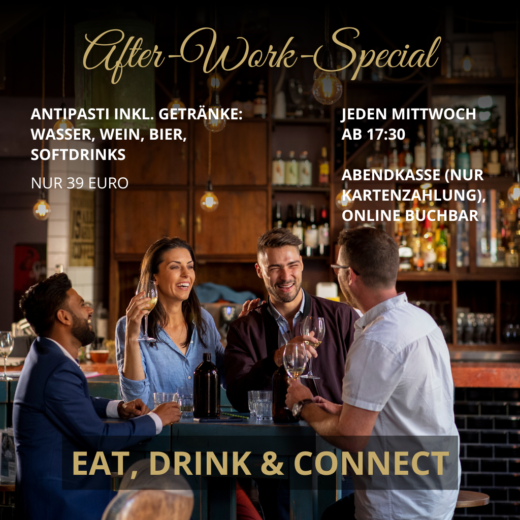 Ob zum Kontakte knüpfen, Runterkommen oder einfach zum Genießen: Unser After Work Special ist der perfekte Wochenhalbzeit-Genuss – ganz ohne Verpflichtungen, dafür mit Stil und Geschmack.